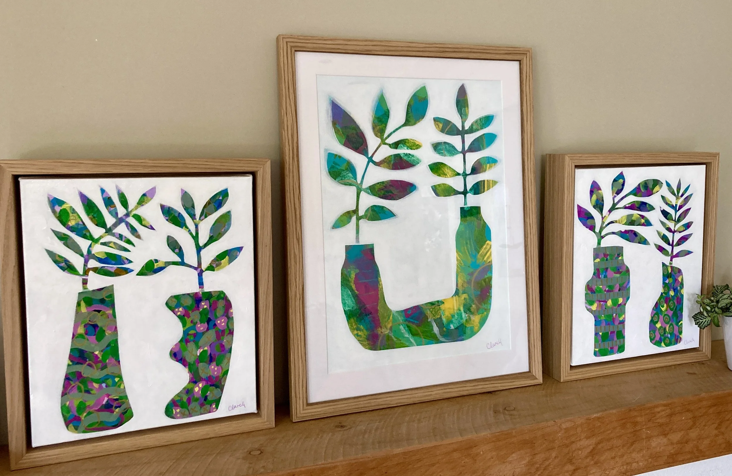 Dancing Cheek to Cheek is from my Dancing Foliage series. In this series, I'm inspired by fun and quirky pottery vessels that have unexpected shapes and forms, and by my desire to spotlight foliage as having energy, colour, and interest just as much as flowers do! In this painting, two separate stems of leaves are connected and dancing together—one standing tall and straight, the other leaning in, perhaps for a whisper or a kiss!