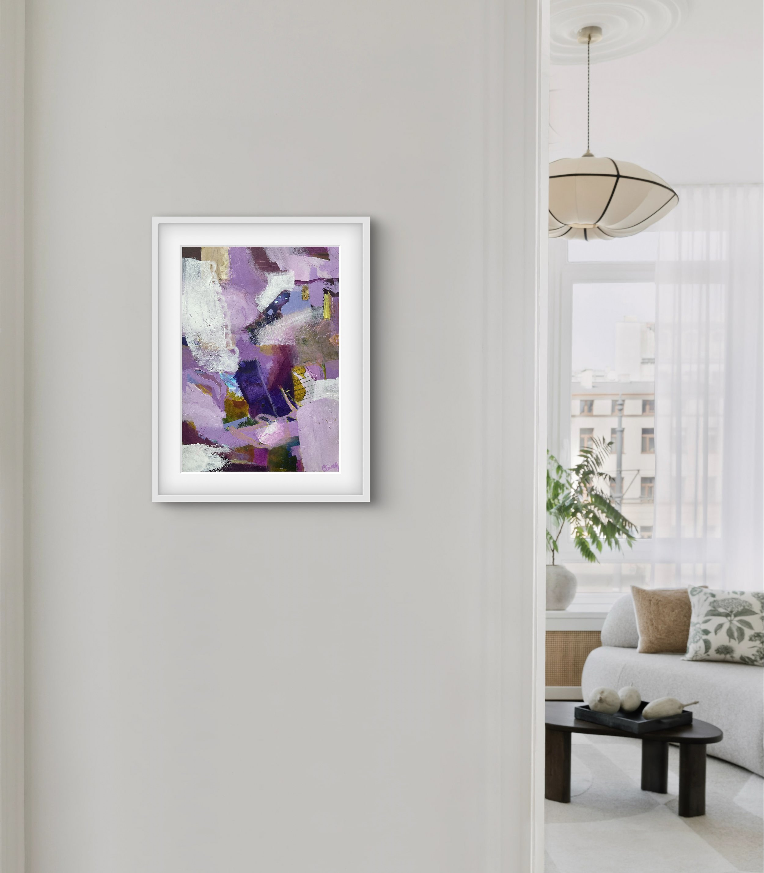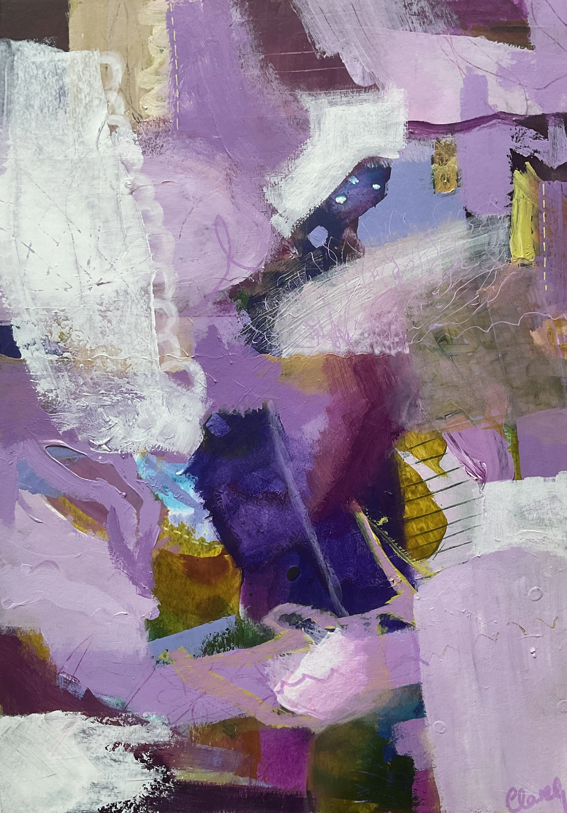 Inspired by fabric scraps I’ve kept squirrelled away, this abstract painting is about how memories can resurface from patterns or colours in fabrics and textiles that have meaning for you. Think Nan’s old carpet or your favourite dress as a child.